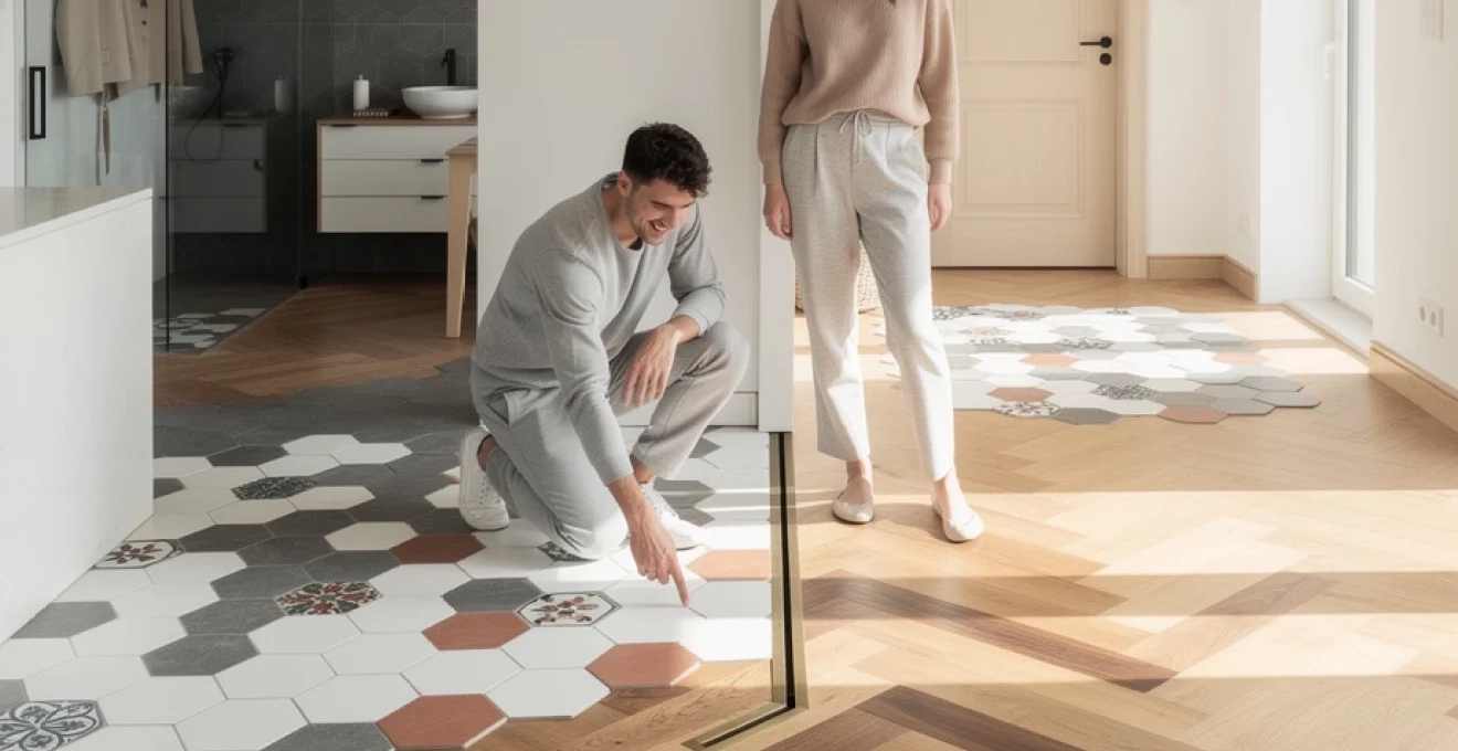 Pourquoi le mix carrelage hexagonal et parquet transforme les espaces de transition